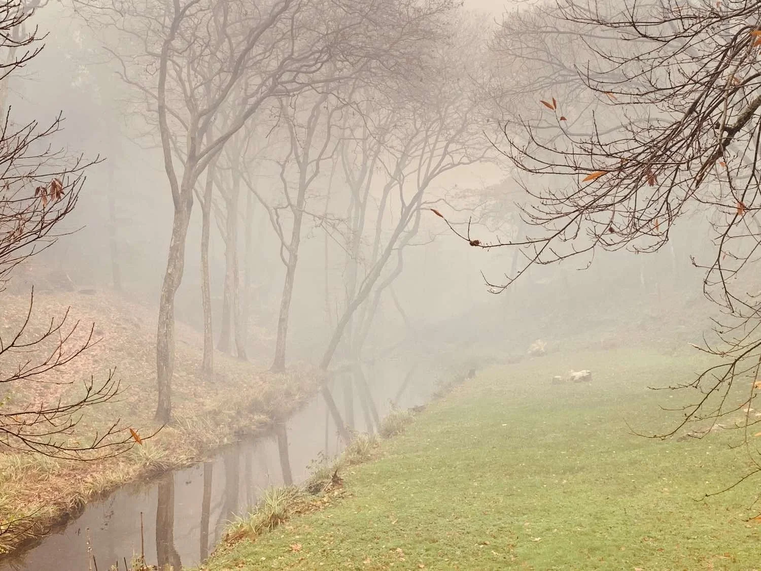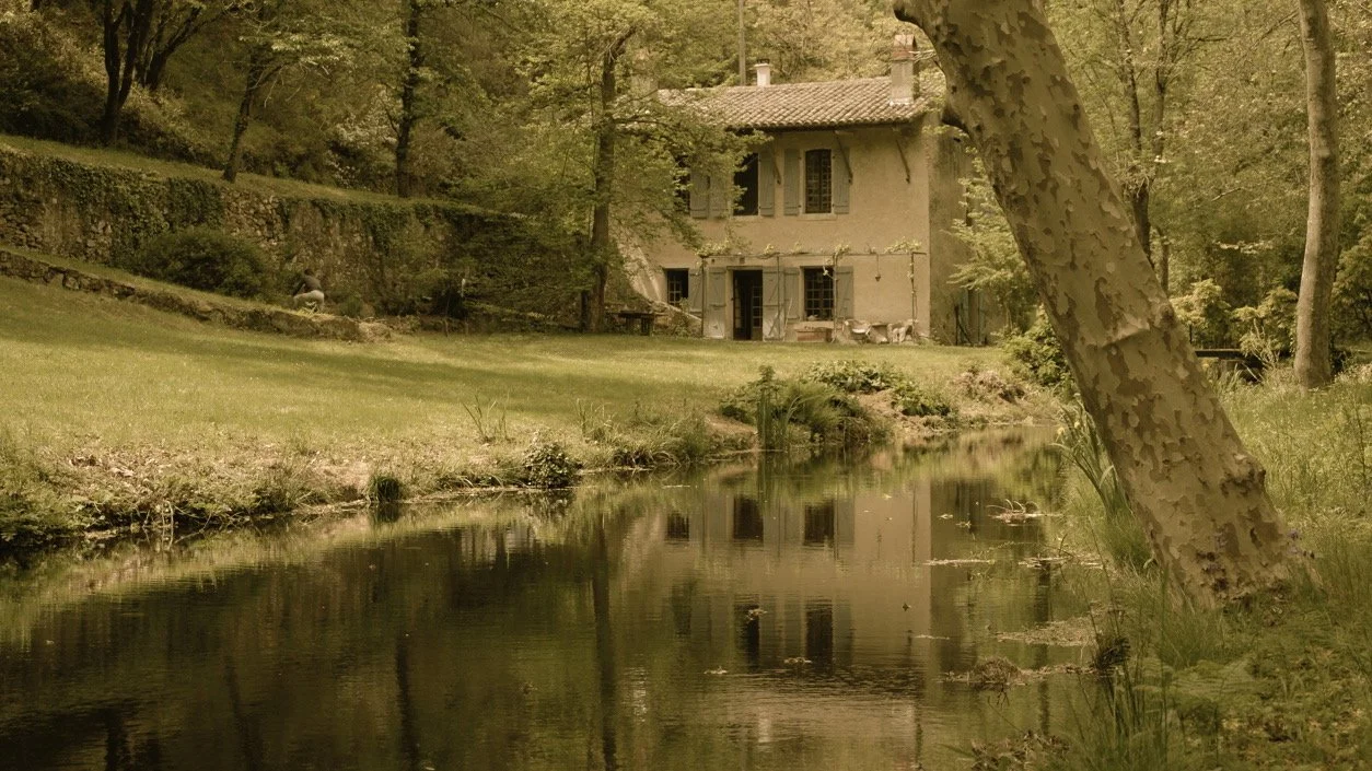 I have spent hours looking at that river, sat beside the old millwheel table beneath the pergola. The high sun of summer arcs from one side to the other, painting it vivid in greens and light. In autumn the sun makes iridescent the mist from the river, finding only brown and gold in the leaves. In winter, like a finger tracing the rim of a lid, it strokes the bare branches of the plane trees knocking drops of light into the river. Summer or winter, the light picks out the rising canopies of the forest like painted stage-cloths in an old-fashioned ballet.